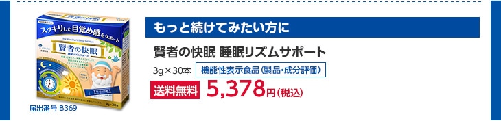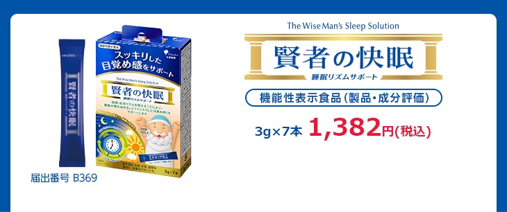 賢者の快眠 睡眠リズムサポートは機能性表示食品(製品・成分評価)です。(届出番号:B369)
