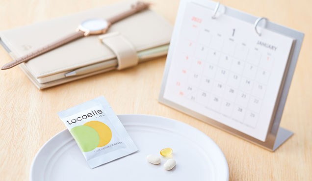 メール便(ポスト投函)にてお届けします。トコエルは、月経前の女性の変化をやさしくサポートする複合型サプリメントです。