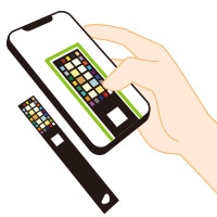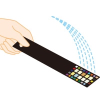 • ■ストリップの表面に余分な尿がついていると、光の反射等の影響でうまくスキャンできないことがあります。必要に応じて、トイレットペーパー等で余分な尿を軽く吸い取ってください。こするとボックス部のインクが剥げるので、こすらないでください。