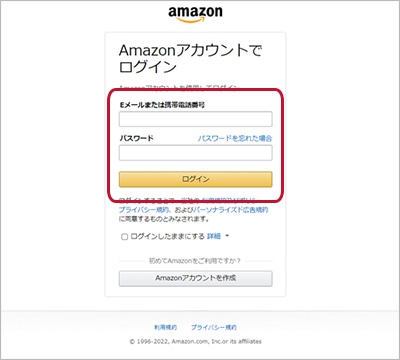 Amazonに登録しているメールアドレス・パスワードでサインインしてください。
