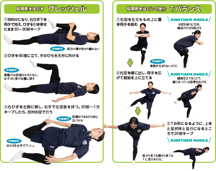 走っていない時間に、筋肉や関節をゆるめ、ランニングでは使わない筋肉を鍛えて身体のバランスを整える。そんなストレッチやトレーニングをご紹介します。
