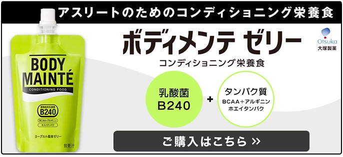 レース後は、身体のリカバリーのために「ボディメンテ ゼリー」がおすすめ。「フルマラソンは完走できたけれど、その後が大変だった」なんてことにならないように、乳酸菌とタンパク質でしっかりメンテナンスしましょう。