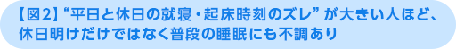 特に、平日と休日の就寝・起床時刻のズレが大きくなると、休日明けだけでなく普通の睡眠にも不調を強く感じる傾向があることが、以下の図表からもわかるかと思います。