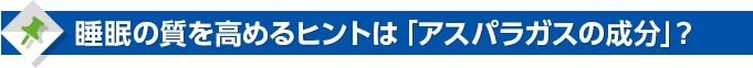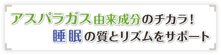 睡眠の質を高め、睡眠リズムをサポートしてくれる注目の成分「アスパラガス由来プロリン-3-アルキルジケトピペラジン(シクロ(L-ロイシル-L-プロリル)、シクロ(L-フェニルアラニル-L-プロリル)、シクロ(L-チロシル-L-プロリル)として)」というペプチド、を、通称「アスパラプロリン」と呼びます。