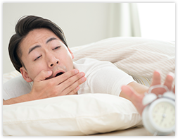 睡眠トラブルを引き起こす「体内リズム(体内時計)の乱れ」の原因は、身の回りに多くあります。夜更かし、朝寝坊、シフト勤務、深夜残業や休日の寝だめ。その結果、体内リズムが乱れていくのです。