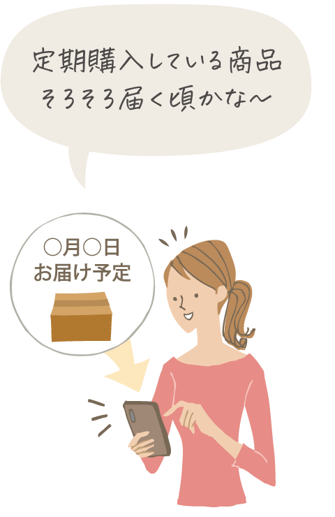 お届け日や商品発送の連絡をメールでお知らせ!定期的にメールが来るので、忘れることなく安心です。