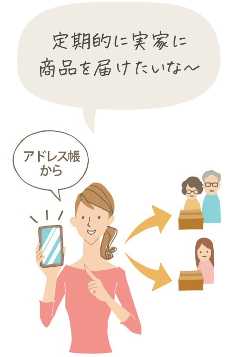 複数の住所をアドレス帳に登録できるため、シーンに合わせてお届け先を選択することができます。