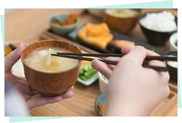 40代・50代のゆらぎ期を迎えた女性が、毎日を笑顔で心おだやかに過ごすためには、カラダの中からのフォローも大切。健やかなカラダづくりのために、毎日バランスのよい食事を摂るようにしましょう。おすすめしたいのが、ご飯とみそ汁に、魚料理、おひたし、煮物などを組み合わせた「和食」です。目安として1日1〜2食、魚や緑黄色野菜を意識して取り入れるようにすると尚よいとされています。