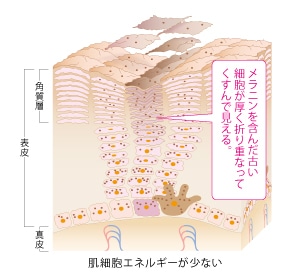 メラニンを作ることは本来の生体機能なので、それを阻害するよりも、役割を終えて「肌にとって不必要になった」メラニンを速やかに排出したいというコンセプトで、「エナジーシグナルAMP※2」を開発しました。