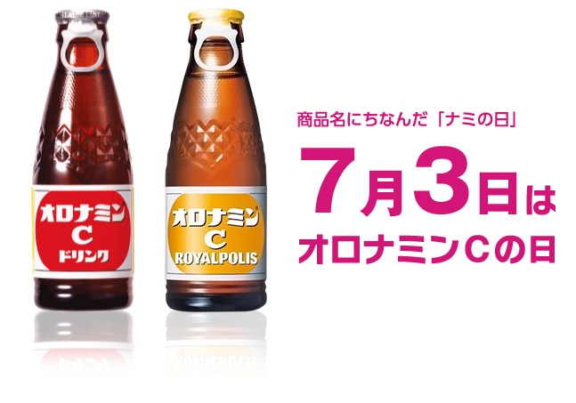 平成23(2011)年5月18日。発売から46年の歳月をかけてオロナミンCは小容量ビタミン含有飲料として国内で初めて累計販売本数300億本を突破しました。これを記念し、商品名にちなんだ「ナミの日」、つまり 7月3日を「オロナミンCの日」として、日本記念日協会に登録を申請し、承認をいただきました。ちなみに申請・承認日は300億本を突破した平成23(2011)年5月18日です。