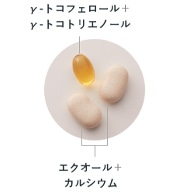γ-トコフェロール、γ-トコトリエノールは透明感のあるソフトカプセルとする一方、エクオールとカルシウムは大豆をイメージした2粒のタブレットという異なる形状にすることで、品質の維持と飲みやすさ、更には個包装で持ち運びの利便性にも配慮しました。