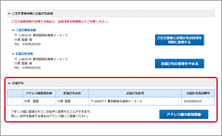 お届け先を変更する場合は、事前に「アドレス帳」への登録が必要です。