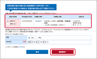 お届け先変更の「変更する」を選択し、「確認画面へ」をクリックしてください。