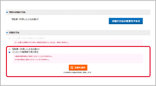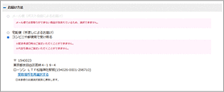 「コンビニ受取時店頭払い」が選択可能です。 ※コンビニ・郵便局受け取りの場合のみ、