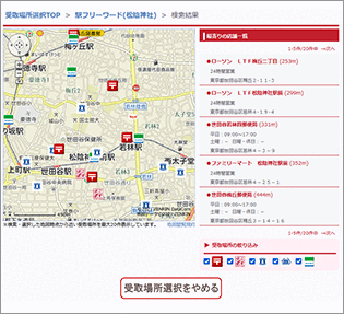 お受け取り可能な店舗一覧が表示されますので、お受け取り店舗を選択してください。