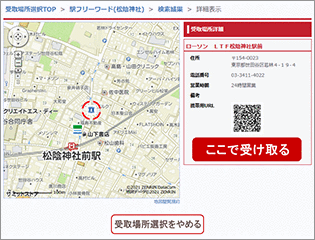 「ここで受け取る」をクリックし、お受け取り場所を決定してください。