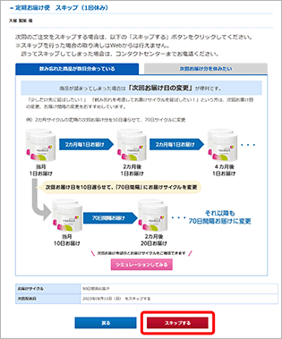 - ※スキップを行った場合の取り消しはWebからは行えません。