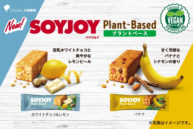 普段の食事だけで植物性食品を補うのが難しい場合は、間食を利用するのもよい方法です。大塚製薬が販売する「ソイジョイ プラントベースシリーズ」も、そんな植物のチカラを活用した食品のひとつ。まるごとの大豆を粉にして焼きあげているので、1本25gで植物性タンパク質6gをはじめ、大豆イソフラボン、食物繊維など大豆の栄養を美味しくスマートに摂ることができます。